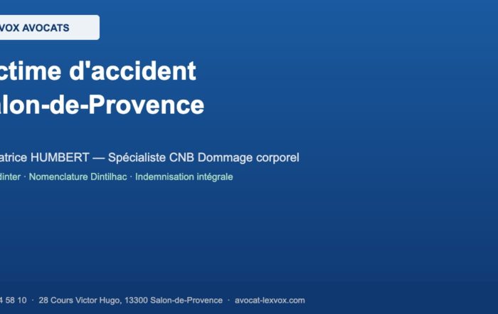 Avocat victime accident Salon-de-Provence — Indemnisation corporelle